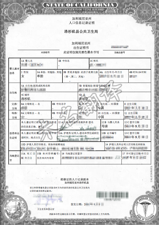 美国这50个州中,有很多都支持外来生育,就目前来说,美国加州是一些新生儿父母去的此时较多也是较广的地方之一。加州的出生证明也是我们经手的较多的出生纸翻译之一。